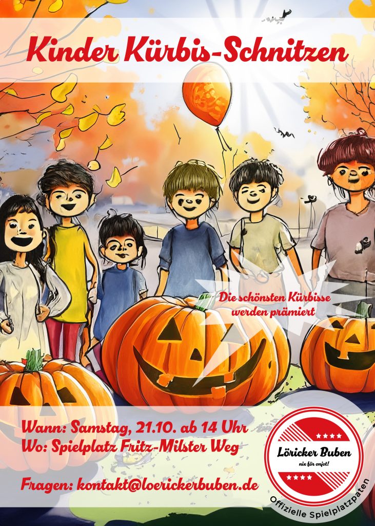 An einem sonnigen Tag in Lörick kamen Familien aus verschiedenen Ecken aus dem linksrheinischem Düsseldorf, um gemeinsam Kunst zu erschaffen und sich zu vernetzen. Unsere kleinen Künstler hatten eine tolle Zeit, als sie sich mit Schnitzwerkzeugen bewaffneten und ihre Kürbisse in schaurige Meisterwerke verwandelten. Anschließend gab es eine tolle Spielplatz-Party, bei der die Kids in ihren Kürbiskunstwerken prahlten und sich neue Freundschaften schlossen.